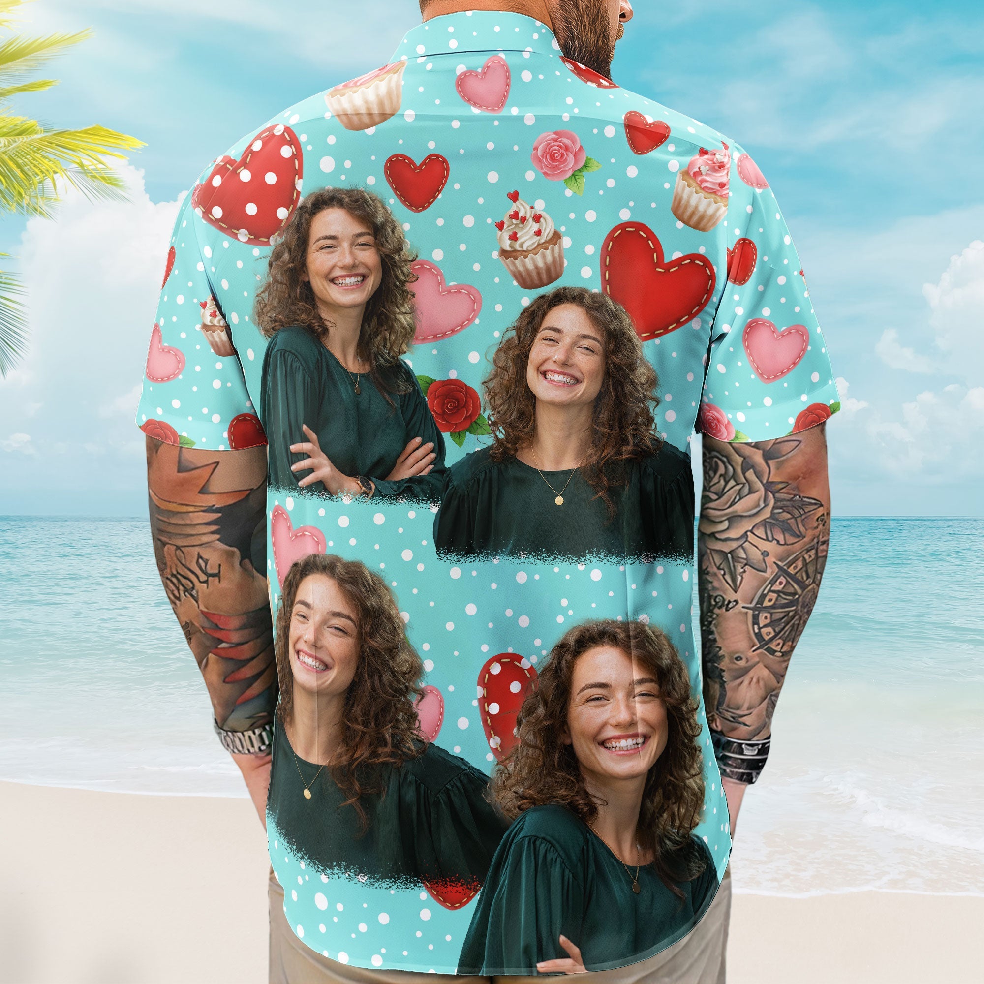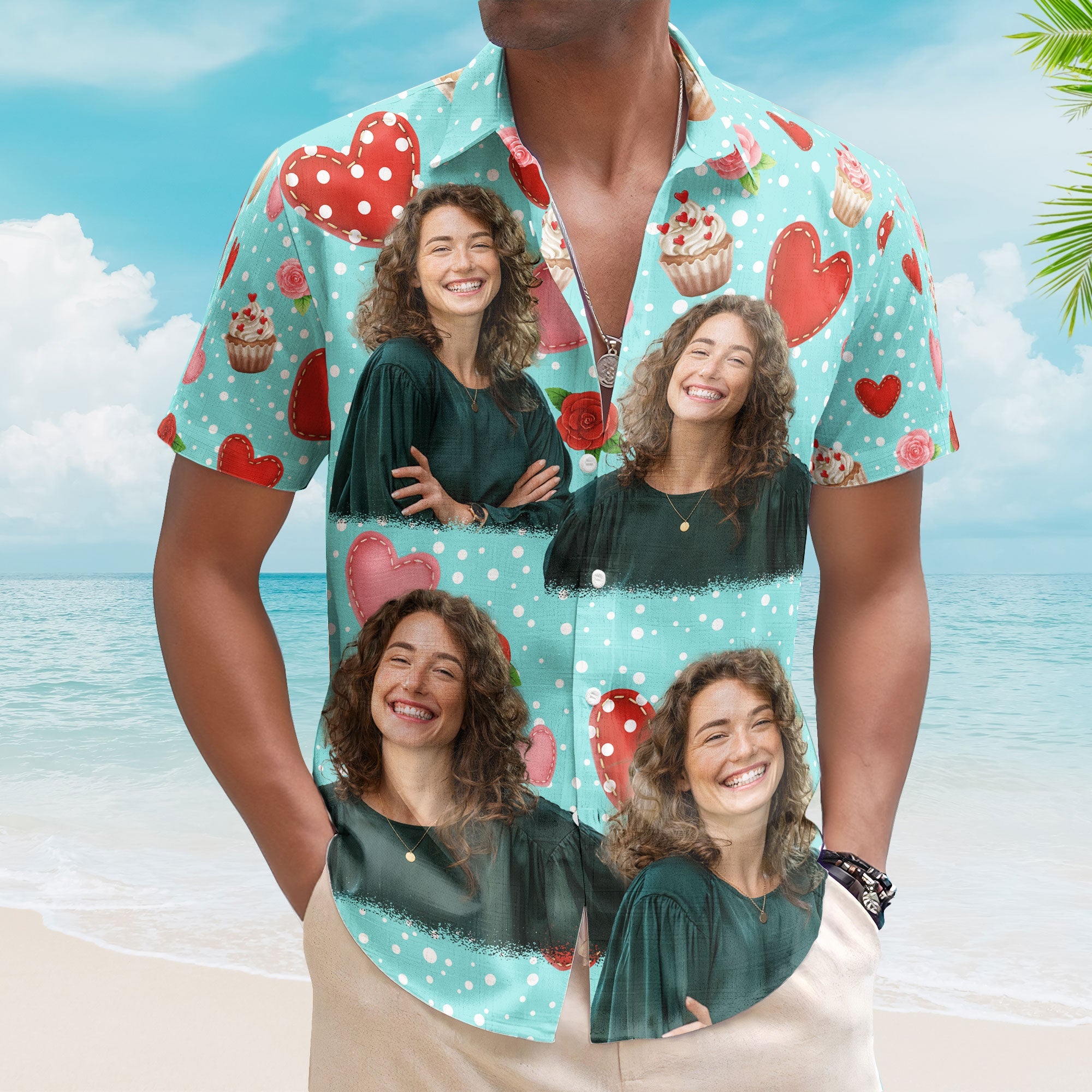 Celebrate love with our Custom Photo Hawaiian Shirts, just in time for Valentine’s Day! Customize it with your favorite photo and enjoy the “All You Need Is Love With Cupcake And Flowers” pattern. It’s the perfect gift for couples, boyfriends, and girlfriends, a gift for your husband or your wife to add a sweet touch to your Valentine’s celebrations. Share your love story with this unique and heartfelt gift that turns a shirt into a cherished keepsake. Embrace the romance and let your love blossom in style!