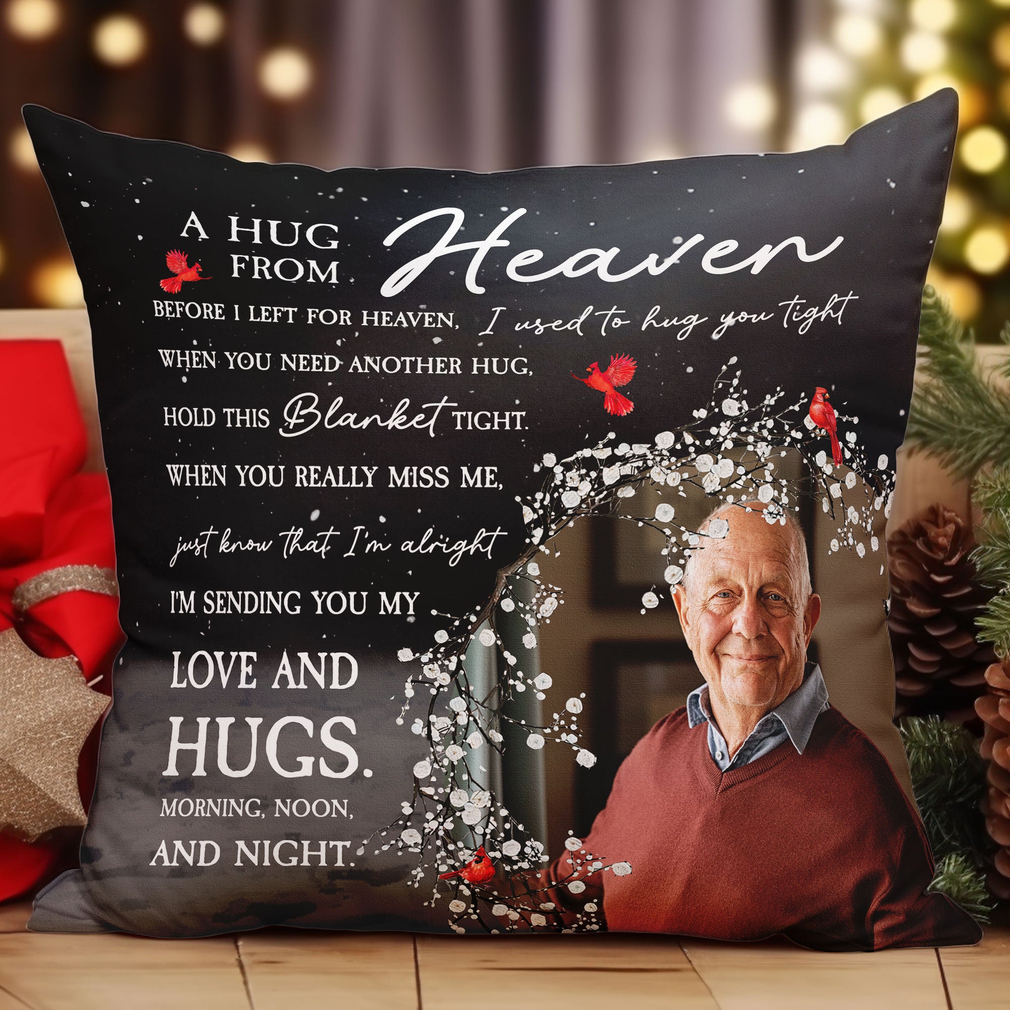 This personalized pillow is a memorial gift for someone who has passed away. It’s also a great Christmas gift for your loved ones! Upload a photo of your loved one and we’ll print it on the pillow , so you can keep their memory close to your heart all year long.