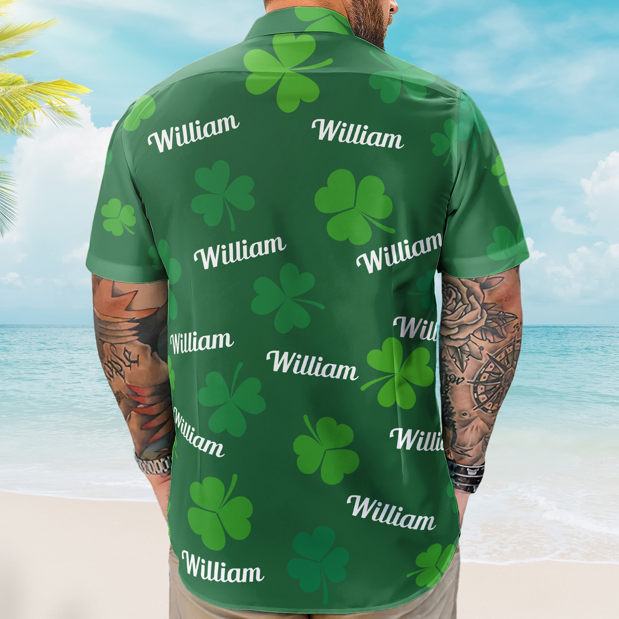 Featuring a lively blend of Hawaiian motifs and St. Patrick’s Day-inspired elements, this shirt captures the spirit of fun and togetherness. Customize it with your family’s name or a special message to create a personalized keepsake that will be treasured for years to come.