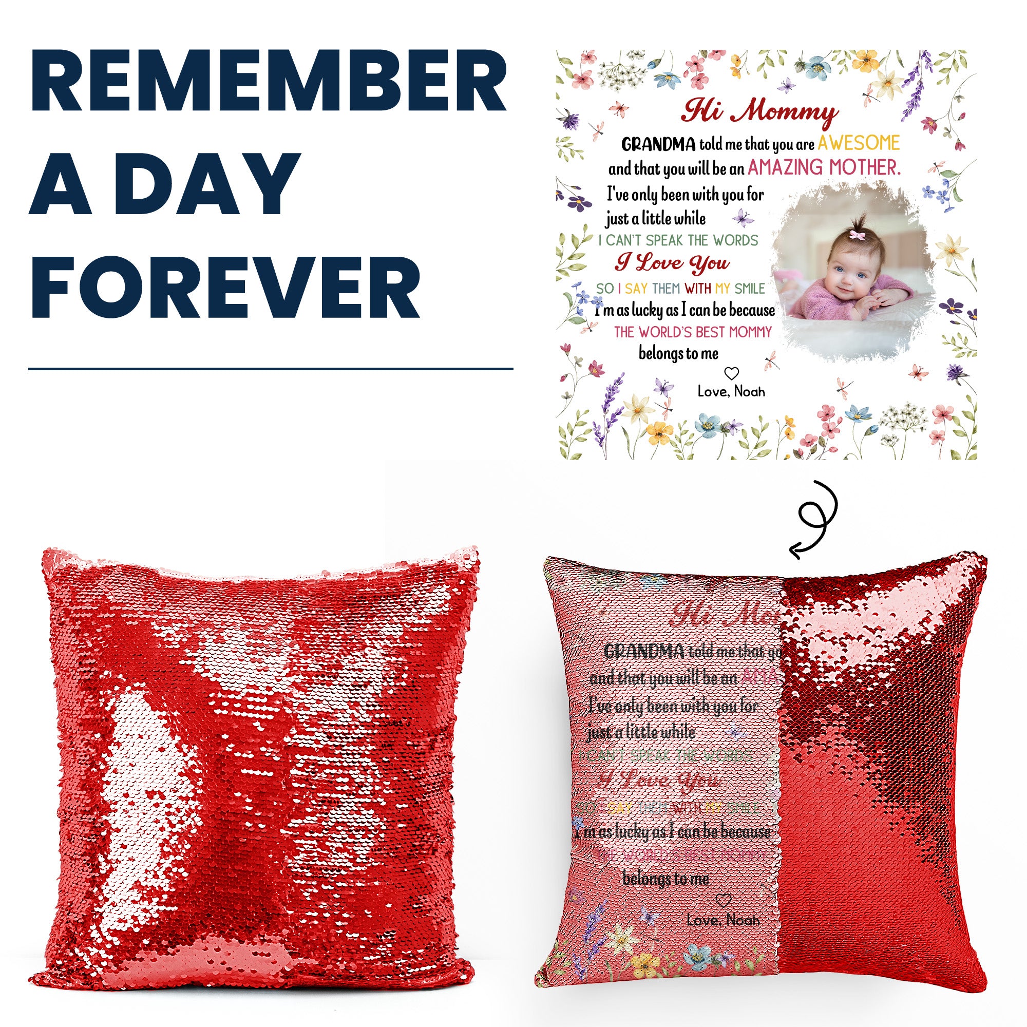Perfect as an announcement gift or keepsake for a new mom, it’s designed to adorn any home with sentimental value. Whether displayed on a sofa or bed, this personalized sequin pillow is a timeless treasure for the family to cherish forever. A meaningful first mom new mom gift for celebrating life’s most precious milestones!